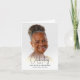 A simple folded thank you card features a your loved one's photo on the front with their name and birth-death dates. The inside features a sample message on the right side you can use or change to your own words and room to add any additional information on the left side. Beautiful for custom thank you notes for your celebration of life, funeral or memorial. MATCHING items in our collection.