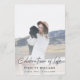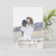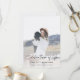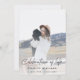 Modern, minimalist photo order of service funeral program to celebrate the life of your loved one in a minimalist clean simple design style featuring an informal casual handwritten script font and a soft dove grey background. The program can easily be personalised with your own photo and text to create a special tribute for your loved one's funeral, memorial or celebration of life. The image shown is for illustration purposes only to be replaced with your own photo. The placeholder image shows a young woman with wavy blonde hair wearing a hat and white sweater dress sitting on a gold vintage jeep in the mountains cuddling an adorable black dog. #funeral #orderofservice