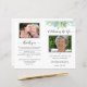 Tasteful funeral memorial program featuring the photo of your deceased love one, showcased by beautiful watercolor greenery detail in pale turquoise, blue and green hues. On the front below deceased photo you can add their name, birth and date of death, memorial venue address and date. Inside to the left, there is an area for the obituary and to the right an area for order of service. On the back there is opportunity to add a second photograph, a thank you message and directions for after funeral directions. NOTE: program comes in a flat quality paper sheet that will need to be fold once you receive them. Coordinating Celebration of Life Invitation Card, guestbook, Welcome Photo sign and thank you notes also available. Part of our "Delicate Funeral, Memorial Collection".