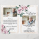 Funeral memorial program featuring on the front a photo of the deceased, thier name, dates, the memorial venue, date of the event, and elegant gold frame with watercolor white roses. On the inside is an obituary, and order of service; and on the back another photo, a thank you note and the second venue for after the funeral.