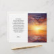 Beautiful sunset funeral program template features a magnificent sunset photo on the front and a obituary photo on the inside along with the order of service, and a scripture on the backside. Programs print front and back on letter size paper that you will need fold in half.