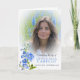 Funeral order of service double-sided floral blue delphinium watercolor art program with blue flowers and green leaves on white. Simply replace the sample text and instant style white framed photo holders and the soft photo frame on the front with your own special photos and information details. Original botanical hand panted watercolor delphinium painting and design by Sarah Trett for www.mylittleeden.com (photos are just placeholder images for you to replace with your own).