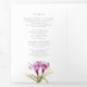 Funeral program order of service double-sided floral purple spring crocus floral botanical watercolor art funeral program. Replace the sample text and nine placeholder photos with your own special photographs, memorial order of service, obituary, reading or poem, and acknowledgements, and other personal information details as required. Original hand watercolor crocus flower painting and design by Sarah Trett for www.mylittleeden.com (the photos are just placeholder images for you to replace with your own special photos).