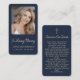 This simple modern memorial prayer card template with elegant gold script on a classic blue background can be given as a keepsake at a Celebration of Life or funeral service or sent as a special tribute to those who were unable to attend. Personalize this card with a favorite photo and your choice of prayer or poem on back of the card. Easy to customize.