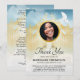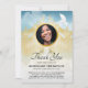 This funeral sympathy thank you card is a simple way to thank those that attended the funeral or supported you during your time of grief. This memorial thank you note features the gold gates of heaven set in the clouds, a photo of the loved one you lost, a dove, and a thank you template that is easy to personalise. On the back is extra text for you to add a poem, hymn or prayer.