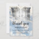 Funeral thank you note on a flat invitation card is a simple way to thank those that showed you comfort during your time of bereavement. Featuring featuring clouds, the gates of heaven, and a simple thank you message that is easy to personalise.