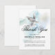 Elegant funeral thank you note on a flat invitation card is a simple way to thank those that showed you comfort during your time of bereavement. This heavenly appreciation note features a blue/grey watercolor wash, a sympathy dove, and a personalized thank you message.