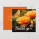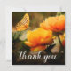Personalized funeral thank you note on a flat square card is a simple way to thank those that showed you comfort during your time of bereavement. This card features a yellow/orange flowers, a pretty butterfly, and a simple editable thank you template.