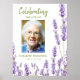 Funeral photo welcome sign featuring purple lavender flowers, a photo of your loved one, their name and dates.
