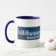 The 15 oz funhouse mug is more than a mouthfull. Featuring the original logo and the new logo on a white mug with blue rim and handle.