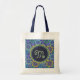 Funky Abstract Blue Floral Pattern Monogram Tote Bag