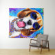 The ultimate in funky retro style, this pupper is sure to make a statement with their bold, colourful style! This playful pup is rocking a pair of oversized sunglasses with a bright pink frame, blue lenses, and purple and orange accents.