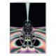 Bright and funky original fractal design, abstract art, colourful bird on black background