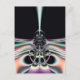 Bright and funky original fractal design, abstract art, colourful bird on black background