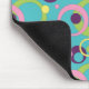 A bright blue background is adorned with a funky pattern of circles, dots, and rings in a variety of vibrant colours, including pink, green, purple, and yellow.