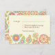This boho wedding invitation suite consists of pastel-hued funky flower graphics that form a fun retro pattern.