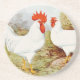 Durable and cute—this sandstone coaster features a vintage illustration of chickens.