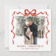 Funky Christmas Boho Red Bow Ribbon 2 Photo Holiday Card