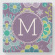 Funky Colourful Floral Pattern Custom Monogram Stone Coaster