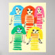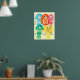 Funky colourful girl doll watercolor poster