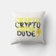 Funky Crypto Dude Energy Power Sign Throw Pillow / Cushion to add to your collection. A cool present / gift idea for all who love custom design items, positive vibes, cryptocurrency market / cryptocurrencies, money markets etc.