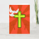 Funky easter design with the cross of jesus in the middle and the dove of peace hovering above and the thieves crosses on either side.