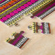 A unique concentric circle mosaic of an elephant with a striped background in pink, orange, yellow, magenta, and brown.