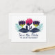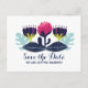 Modern and elegant Funky Floral Save the Date Postcard with a colourful array of lush dark blue and periwinkle foliage and stylised magenta pink and purple flowers. This chic and trendy save the date postcard can be customised with the details of your upcoming wedding. For more customisation options, click on the Customise It button.