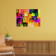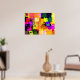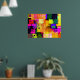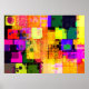 Modern, groovy geometric design using colourful abstract squares and circles. A kaleidoscope of colours makes up this contemporary design.