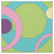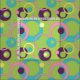 A bright green background is adorned with a funky pattern of circles, dots, and rings in a variety of vibrant colours, including pink, blue, purple, and yellow.