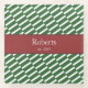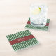 Add a touch of unique funky design to your home decor with this custom family name glass coaster. This modern coaster has a background pattern of green and white stripes and a red area for your family last name and the date your family was established (or text of your choice).