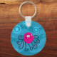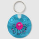 Funky cartoon octopus swimming in the ocean waves with retro air bubbles.