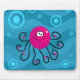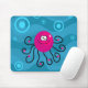Funky cartoon octopus swimming in the ocean waves with retro air bubbles.