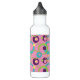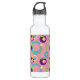 A bright pink background is adorned with a funky pattern of circles, dots, and rings in a variety of vibrant colours, including blue, green, purple, and yellow.