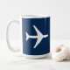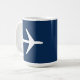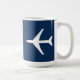 Funky White Plane Dark Blue Background Coffee / Tea Mug Cup to add to your home / office drinkware collection. A cool present / gift idea for all who love custom design items, positive vibes, sky, flying, aviation etc. Airways, airlines, sky, air. Change the background colour (blue) to suit your style.