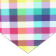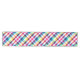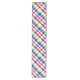 A 16”x90” table runner featuring a colourful plaid pattern design in rainbow colours.