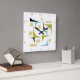 Add a pop of colour to your wall with this funky mid century modern clock! It features the fun colours of aqua blue, avocado green, yellow, and black geometric shapes, along with matching green numbers.