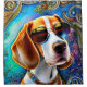 The ultimate in funky retro style, this pupper is sure to make a statement with their bold, colourful style! This playful pup is rocking a pair of oversized sunglasses with a bright pink frame, blue lenses, and purple and orange accents.