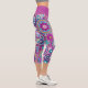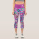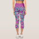 Funky Retro Floral Pattern with Name - purple blue Capri Leggings