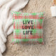 Funky Retro Green, Red, Pattern, Flowers, Cushion