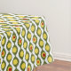 This fun and funky tablecloth features a retro style pattern in olive green with bead-like oblong shapes set at intervals along straight lines. Each colour may be edited in this special graphic for a custom look