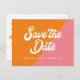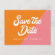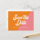 Funky Retro Orange Pink Wedding Save The Date Announcement Postcard