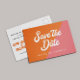 This retro orange, pink, and white colour block wedding save the date postcard is unique and will have your guests excited to receive an invitation to a fun filled celebration with you.