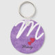 Trendy keychain in lavender purple with stylish retro pattern, red hearts and customizable name and initial. Impress your family and friends with this stylish and modern design. Fully customizable! Easy to use and easy to personalize. Order Today!