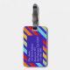 A colourful striped luggage tag with a lot of options to customise to your needs. You can scale, rotate or drag the rainbow striped image and also choose different background colours for both the design and the text background (which you can also rotate or delete). Enjoy designing and happy travels!