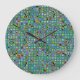 Funky Turquoise Textured Mosaic Tiles Pattern Large Clock