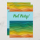 Here's a great invitation for a teen or adult birthday pool party, featuring funky waves in shades of blue, green, yellow, and orange that evoke Hawaii, Florida, or anywhere a hot beach, sand, and surf await. Fun but not childish. Great for any swimming party or a birthday party featuring water games of any sort. Use the easy template to personalise your party information.