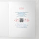 The left panel offers space for reception and travel information, while the right holds an RSVP section with room for a scannable QR code for effortless replies.