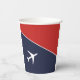 Funky And Stylish White Plane / Aeroplane / Planes Aviation Pilot Flying Paper Cup to add to your collection. Red, white and blue background. A cool present / gift idea for all who love custom design personalised unique items, positive vibes, aviation, flying, sky, planes, aeroplanes, pilots, air transport theme etc. Baby shower, birthday etc. Boy, girl, fly, aircraft, wings, captain, jet, aeronautics, aerospace, meteorology, airborne, airline, airlines, airways, airport, circle. Each side is slightly different.