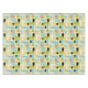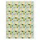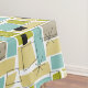 This funky mid-century modern tablecloth features aqua blue, avocado green, yellow, and tan abstract rectangles, along with highlights of black and white starbursts. Add a pop of WOW! to your dining room table.